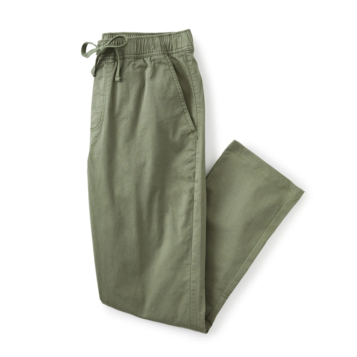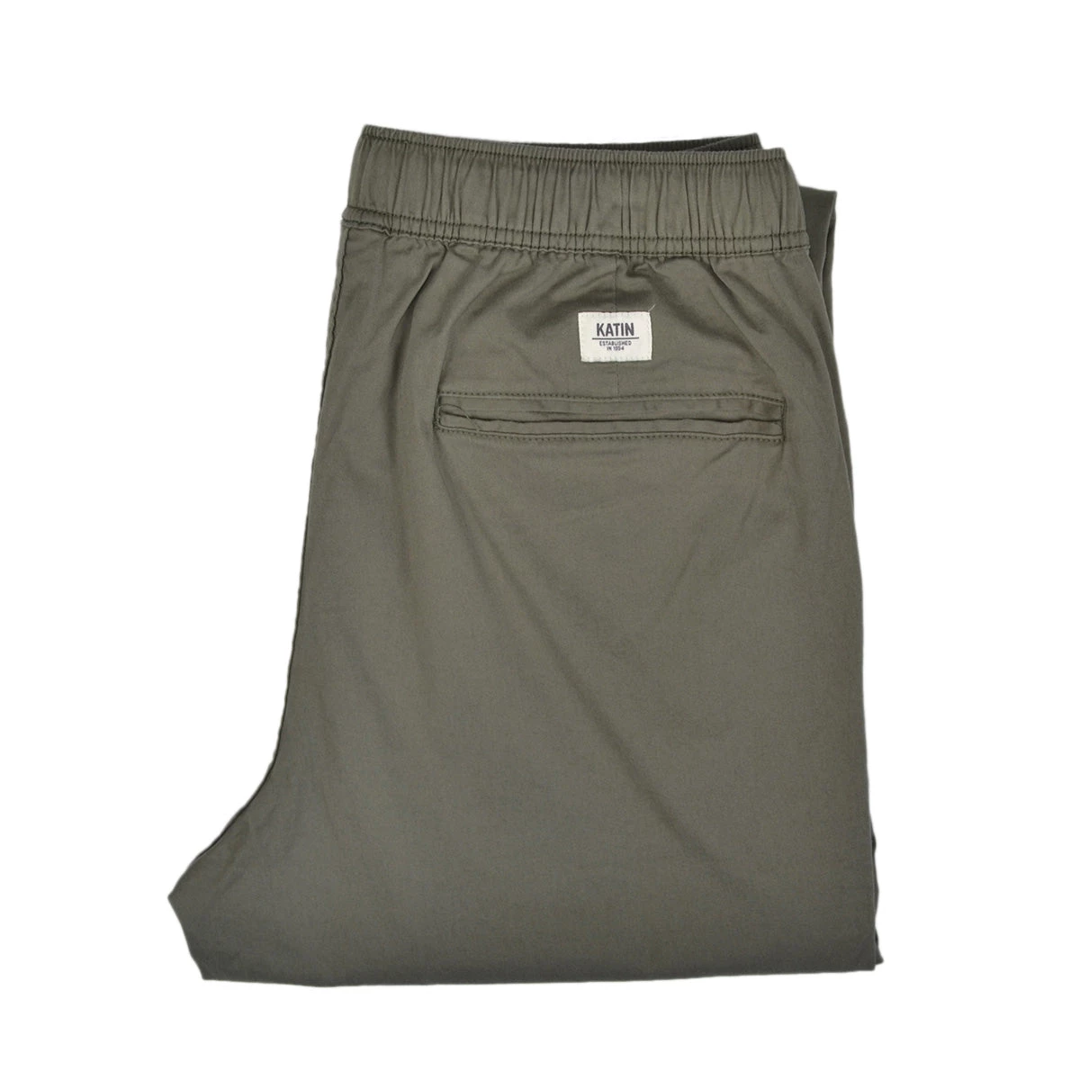 The Stand pant is made of 98% cotton 2% stretch twill with a light peach finish and our iconic enzyme wash, elastic waistband and drawcord, double welt back pockets and clean-finished seams and a 15″ leg opening on size 32.