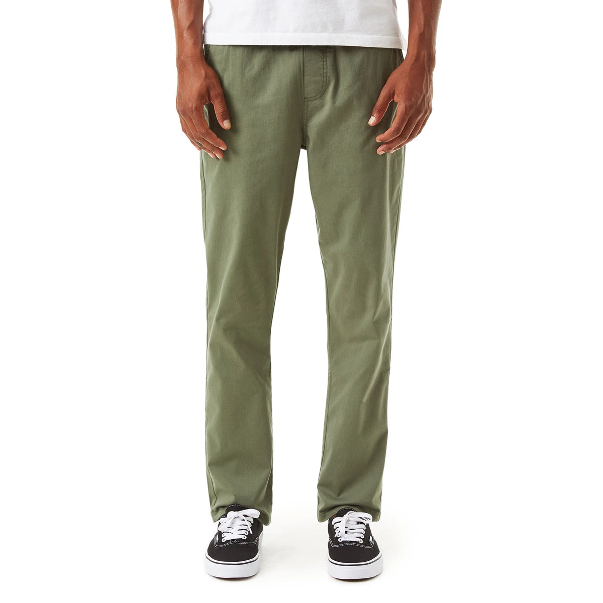 98% cotton, 2% spandex elastic waist chino pant
