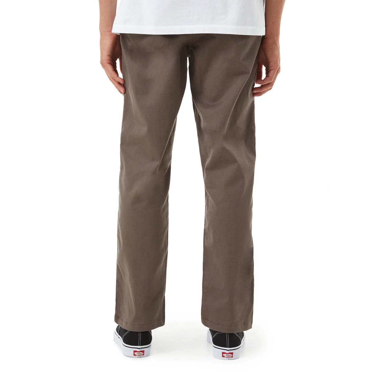 The Stand pant is made of 98% cotton 2% stretch twill with a light peach finish and our iconic enzyme wash, elastic waistband and drawcord, double welt back pockets and clean-finished seams and a 15″ leg opening on size 32.