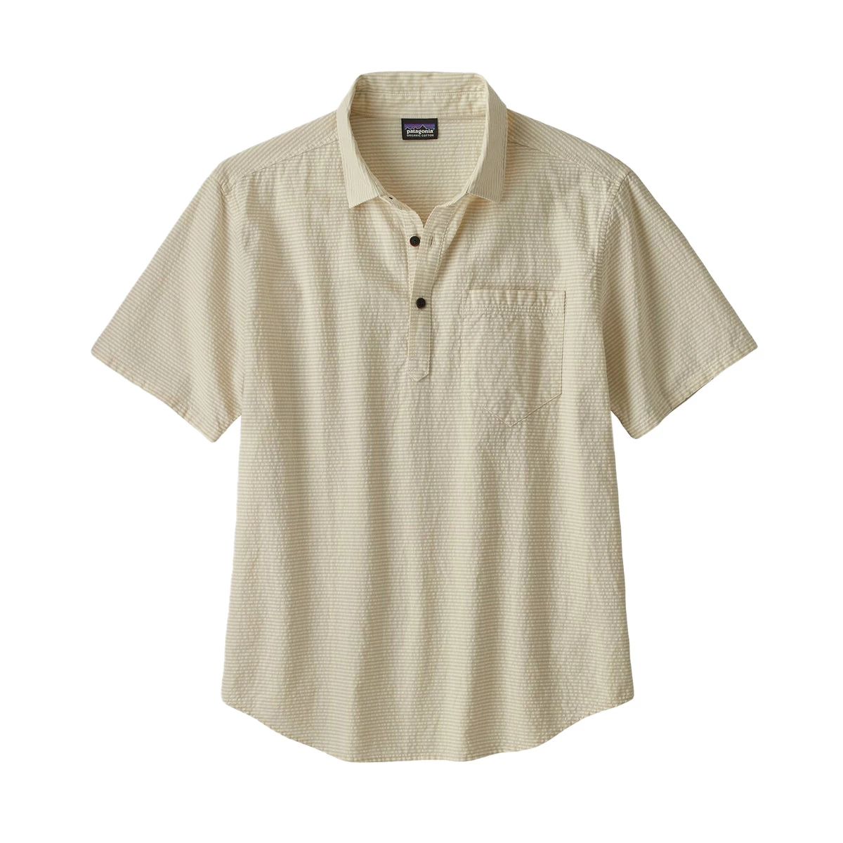 An airy, pullover seersucker shirt made of lightweight organic cotton fabric for cool-wearing comfort in hot weather.