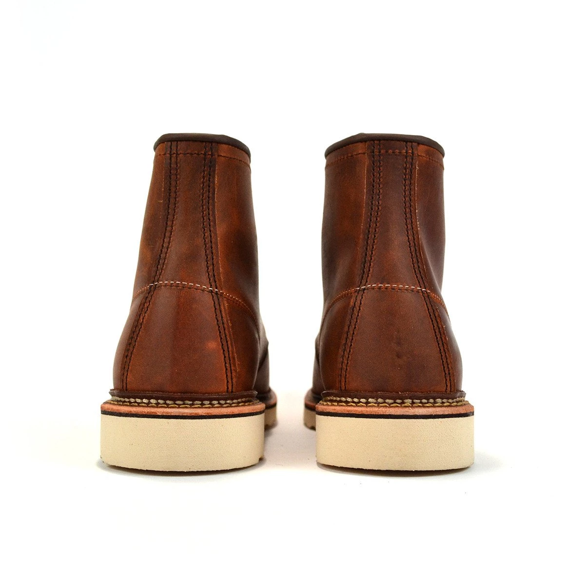 The 1907 is modeled after the original work boot styles that made Red Wing famous. The 6” moc toe style is classic Red Wing work with Copper Rough & Tough leather, white traction tread cushion crepe wedge sole, Norwegian welt, triple stitched quality and rawhide laces.