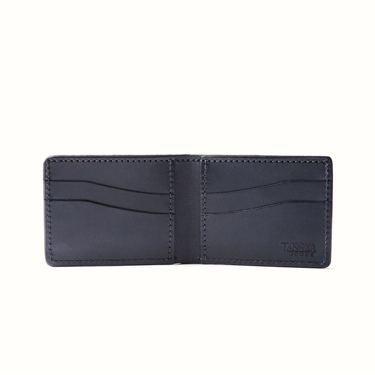 Constructed from 3.5oz. vegetable-tanned Meridian English Bridle leather, Tanner’s Utility Bifold features four card-slot pockets, two hidden pockets, and one lengthwise pocket for bills. Each wallet is burnished, waxed, and stamped with Tanner Goods signature maker’s mark by hand.