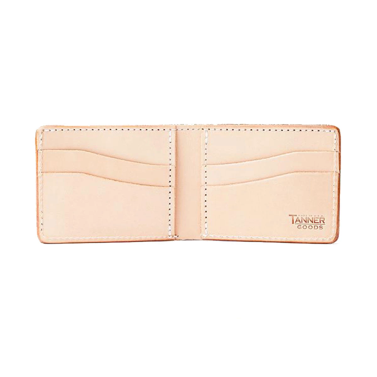 Constructed from either 3.5 oz. vegetable-tanned natural tooling strap or Horween Chromexcel leather, Tanner Goods’s Utility Bifold features four card-slot pockets, two hidden pockets, and one lengthwise pocket for bills. Each handmade wallet is burnished, dyed, waxed, and stamped with their signature maker’s mark by hand.