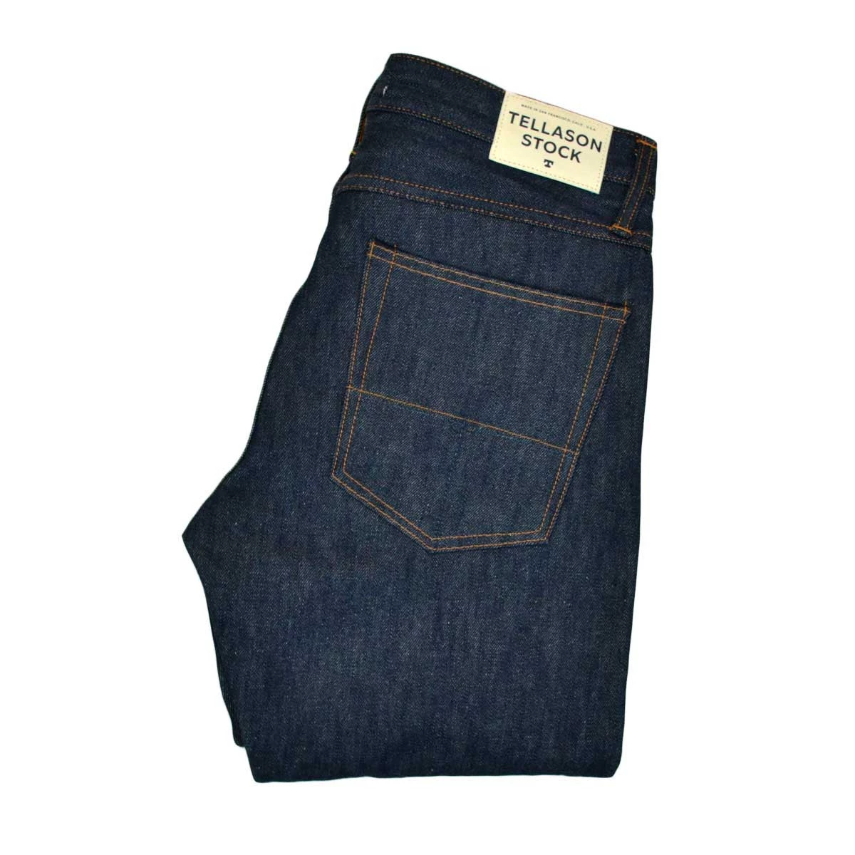 The Tellason Stock Slim Tapered jeans are made in San Francisco, California from 14 oz. non-selvedge denim milled at the historic Cone Mills White Oak plant (ca. 1905) in Greensboro, North Carolina. Tellason’s Slim Tapered fit has a low-to-mid front rise and “normal” back rise with a button-fly and the bottom of the back pockets are lined for durability.